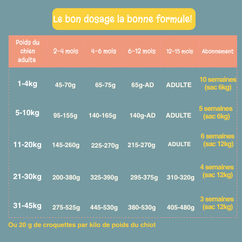 Cette recette est pensée pour tous les chiots, peu importe leur race ou leur gabarit. Elle convient aussi bien aux petits explorateurs pleins d’énergie qu’à ceux qui prennent la vie plus tranquille, grâce à un bon équilibre entre protéines, énergie et digestibilité Quand j’étais chiot, je mangeais à toute vitesse, comme si quelqu’un allait me voler ma gamelle… Cette recette, facile à digérer, aurait été parfaite. Une transition alimentaire progressive est recommandée, pour que tout se passe bien dès les premières bouchées.