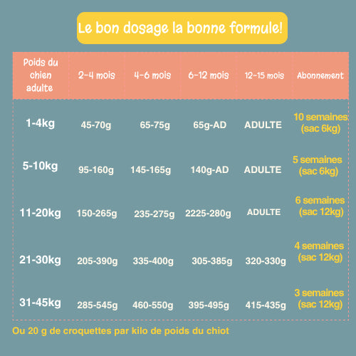 Quand j’étais chiot, j’étais câline et curieuse à la maison, mais dès que je mettais une patte dehors, c’était l’aventure ! Pour tous les petits explorateurs comme moi, j’ai choisi la recette Bien-Être+ Dinde : de la dinde savoureuse, riche en protéines pour bien grandir, et du collagène pour renforcer les os et les articulations. Avec ses super aliments comme la papaye et le persil, cette recette offre aux chiots une alimentation complète et naturelle pour démarrer la vie du bon pied.